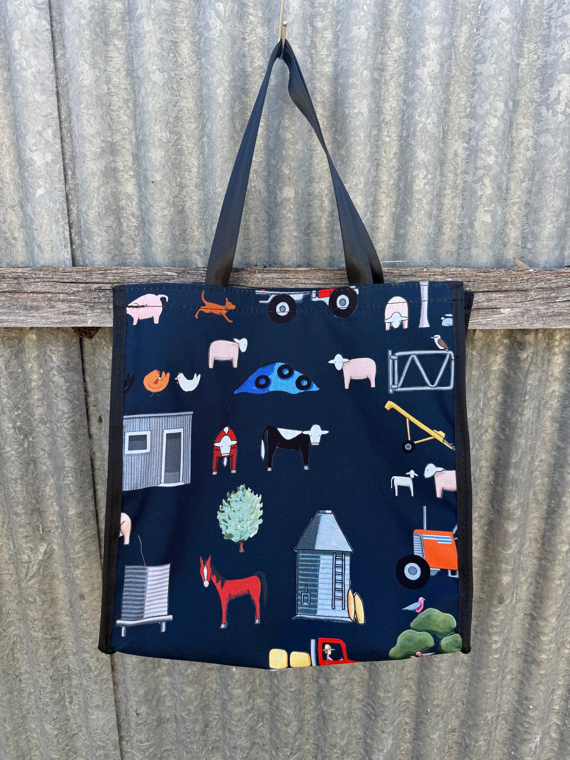 Pvc and fabric shopping bag - Navy farming